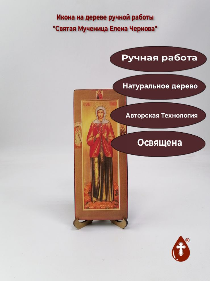 Икона на дереве "Святая Мученица Елена Чернова, 8x20x1,8 см, арт В2121" станет прекрасным подарком для верующего человека, а также займет особое место в любом доме, храме или церкви.