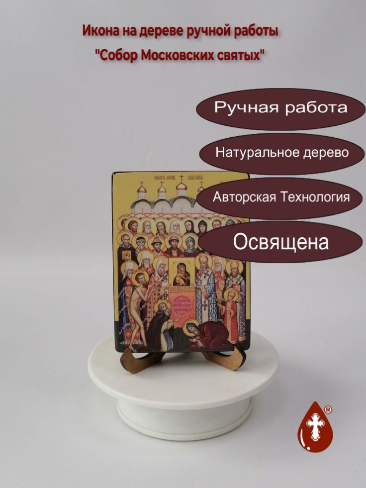 Икона на дереве "Собор Московских святых, 9x12x1,8 см, арт Ид4907" станет прекрасным подарком для верующего человека, а также займет особое место в любом доме, храме или церкви.