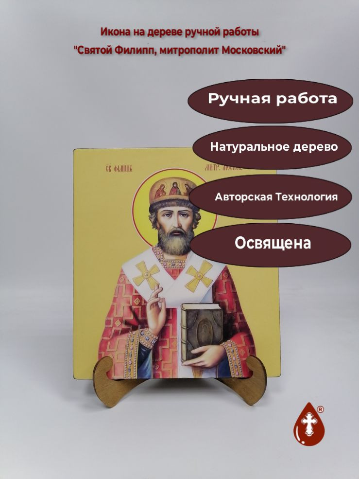 Освященная икона на дереве ручной работы "Святой Филипп, митрополит Московский, 25x28x3 см, арт И10119" представляет собой произведение мастерского искусства, созданное мастерами Семейной Мастерской "РОСА". Икона является авторской работой, что делает ее уникальной и ценной для любого верующего.