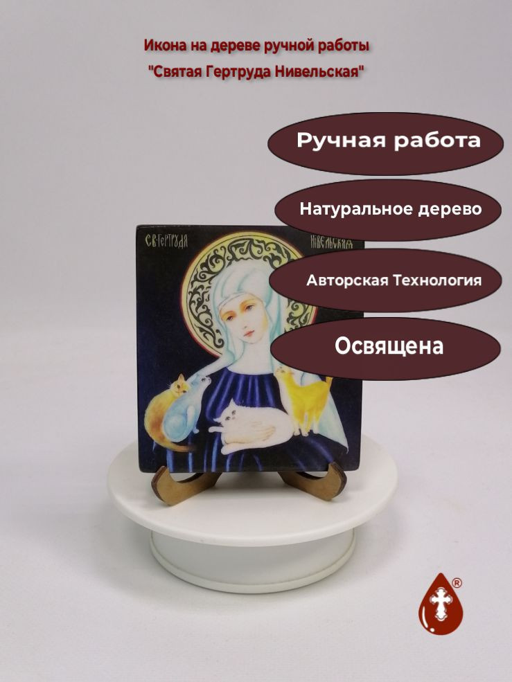 Освященная икона на дереве ручной работы "Святая Гертруда Нивельская, 9,5x10,5x1,8 см, арт В8332" представляет собой произведение мастерского искусства, созданное мастерами Семейной Мастерской "РОСА". Икона является авторской работой, что делает ее уникальной и ценной для любого верующего.