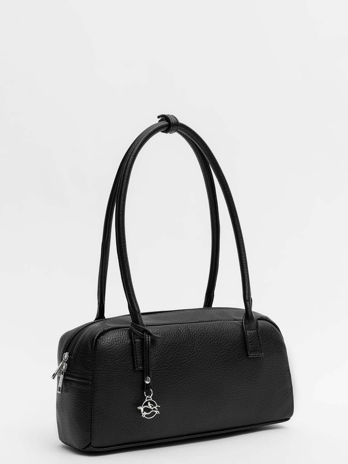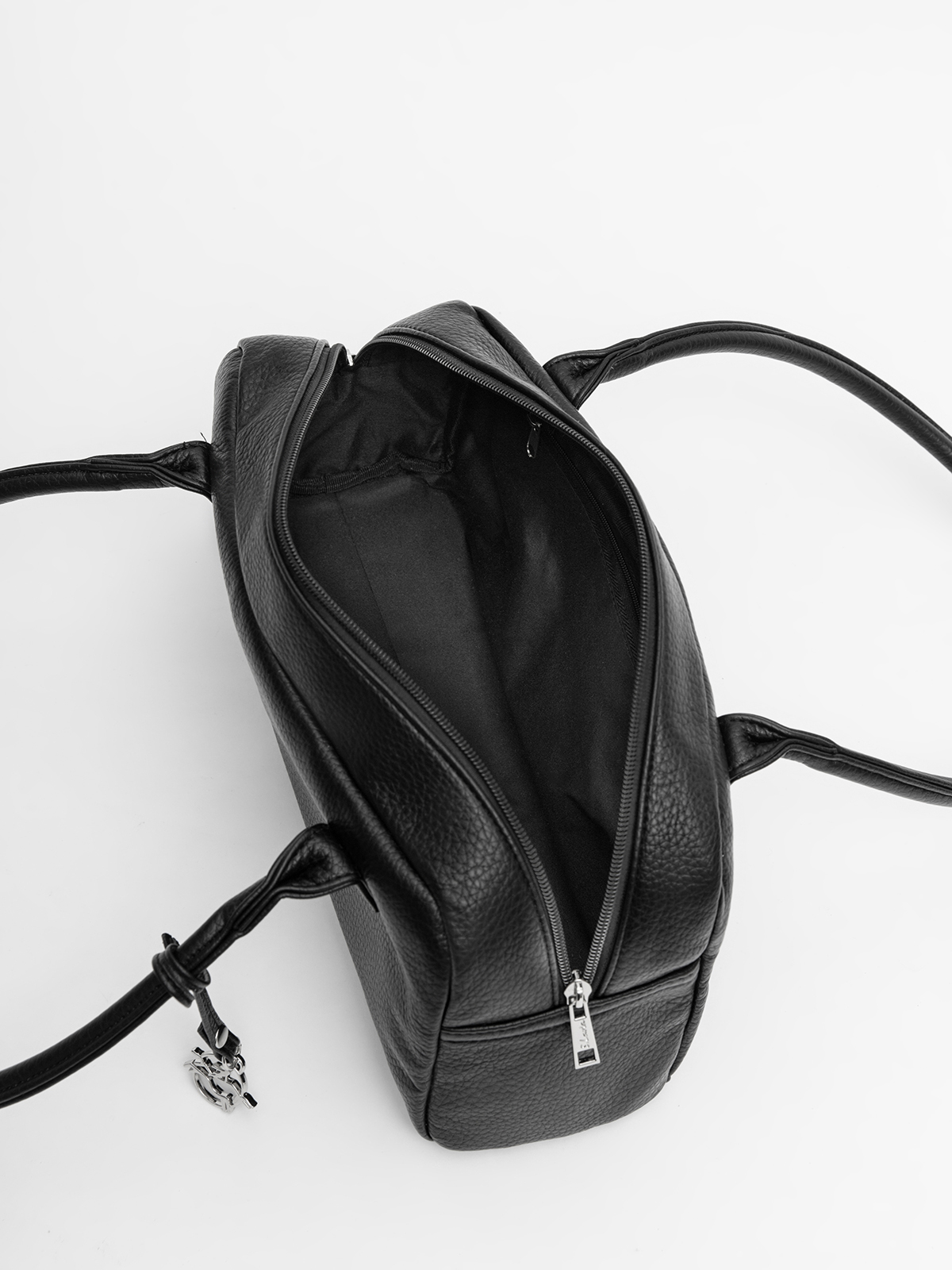 Основное отделение с удлинённой молнией на двух бегунках легко расстёгивается, а широкий бочок вмещает всё необходимое для работы и прогулок по городу. Модель представлена в классическом чёрном цвете.