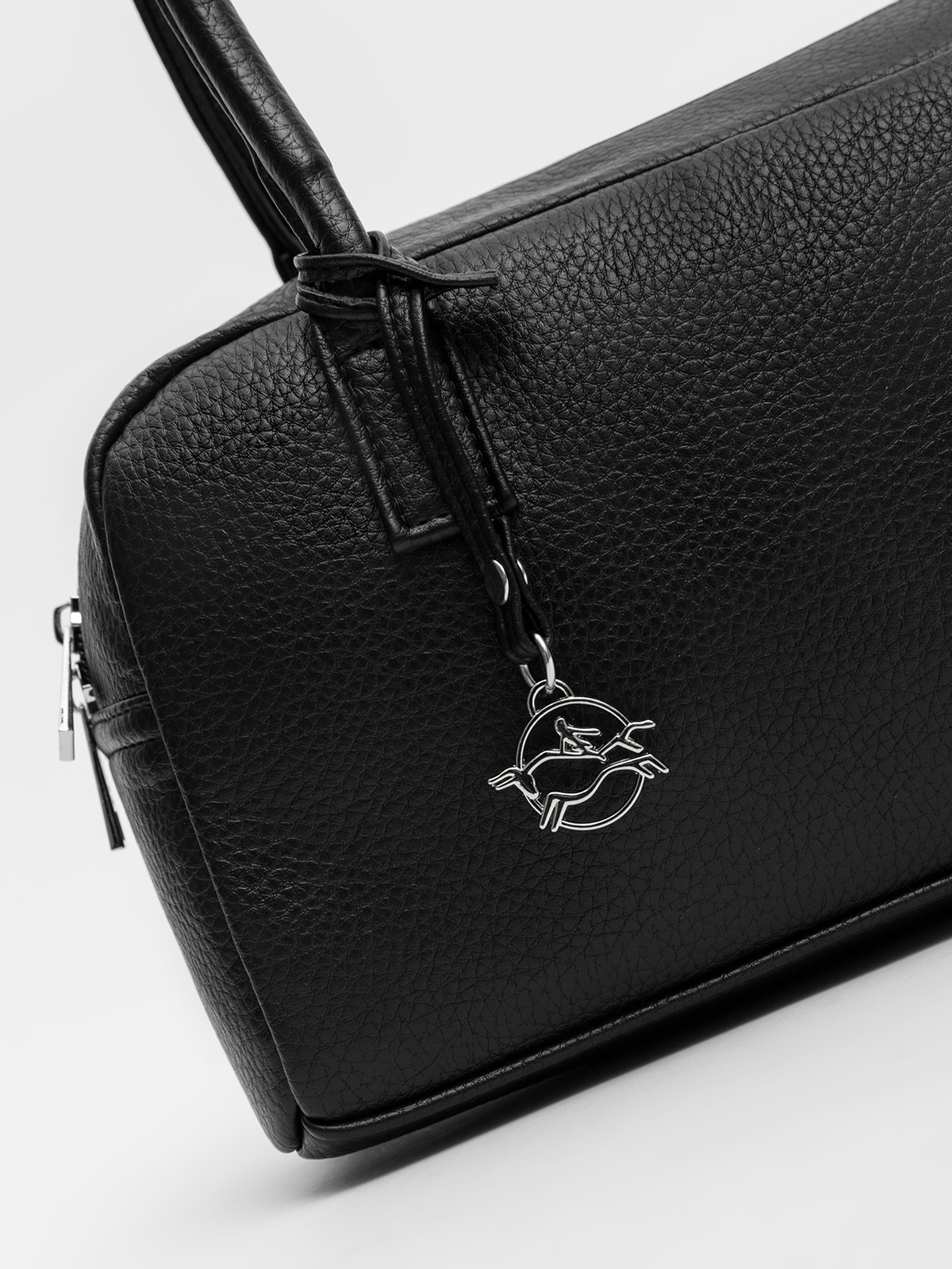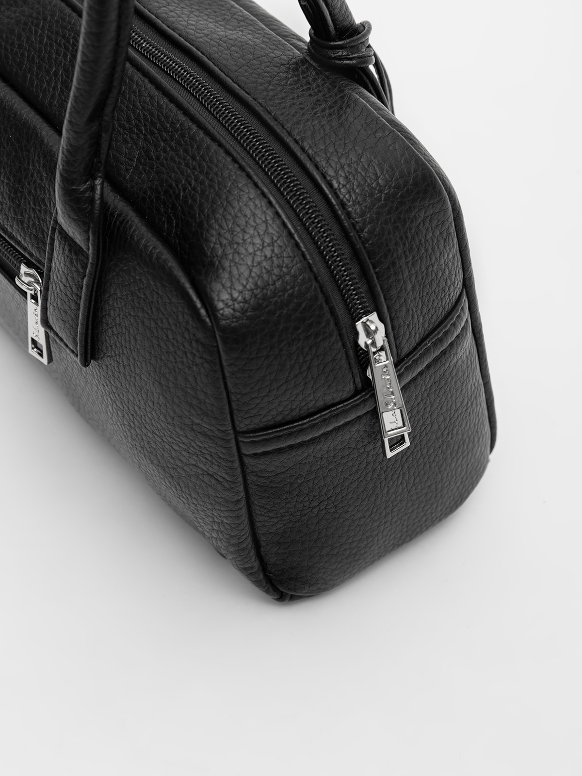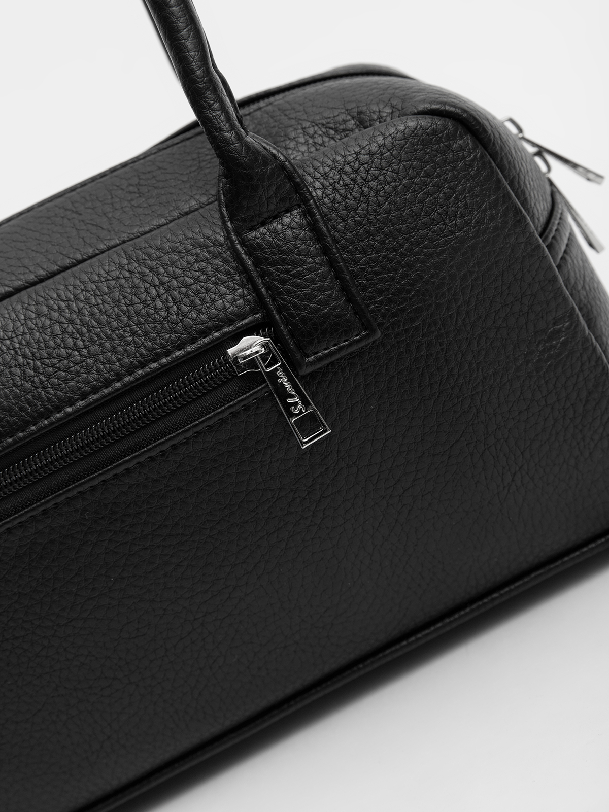 Саквояж вытянутой горизонтальной формы "east-west" с крепкими настрочными ручками смотрится трендово и элегантно. Ручки фиксируются хлястиком на кнопку — они не спадают и не мешают открывать сумку, сохраняя аккуратный вид.