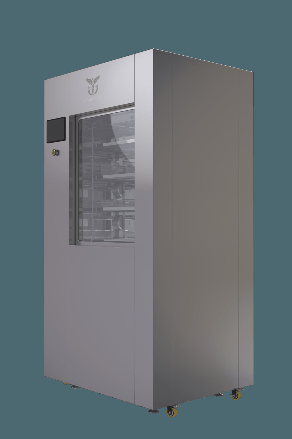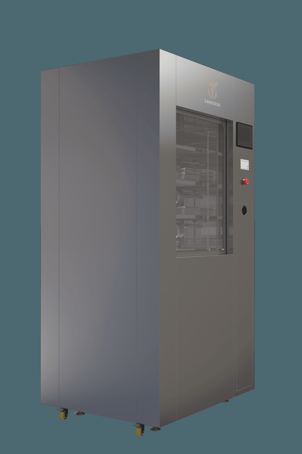 Управление CADUCEUS PURE A300 осуществляется с помощью удобного сенсорного экрана, который синхронизируется с внутрибольничной информационной системой (RS485), позволяя фиксировать и хранить данные обо всех этапах обработки. Дополнительно предусмотрена функция автоматической печати отчета о проделанных операциях.
