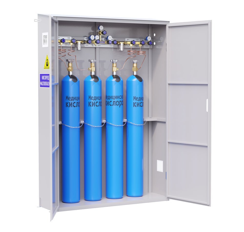 Двухплечевые рампы CADUCEUS разработаны с учетом возможности подключения от 1 до 40 баллонов, в зависимости от применяемого газа. Исходя из технических возможностей размещения могут исполняться в шкафу.