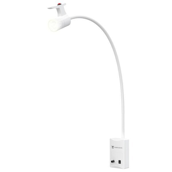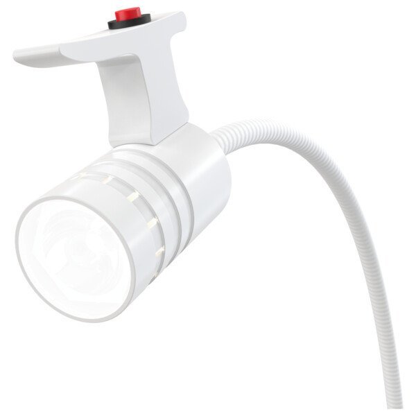 Особенностью данной лампы является ее гибкий штатив, который позволяет легко регулировать угол наклона и высоту светильника, что делает ее удобной в использовании. Крепление на медицинский рельс обеспечивает надежную фиксацию лампы и возможность ее перемещения.