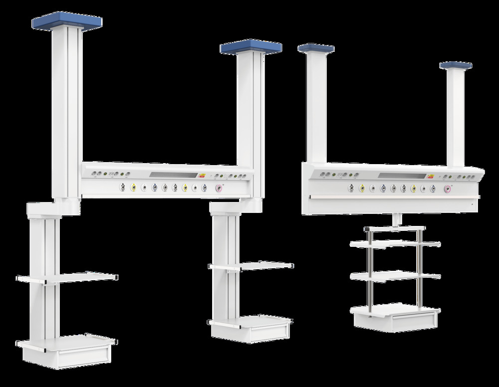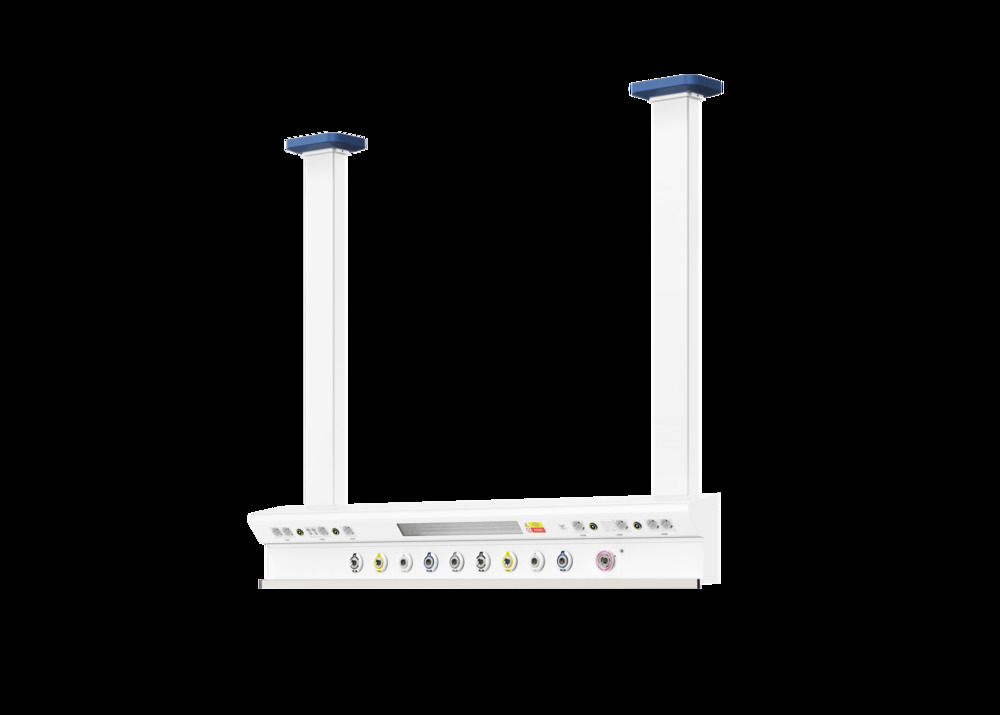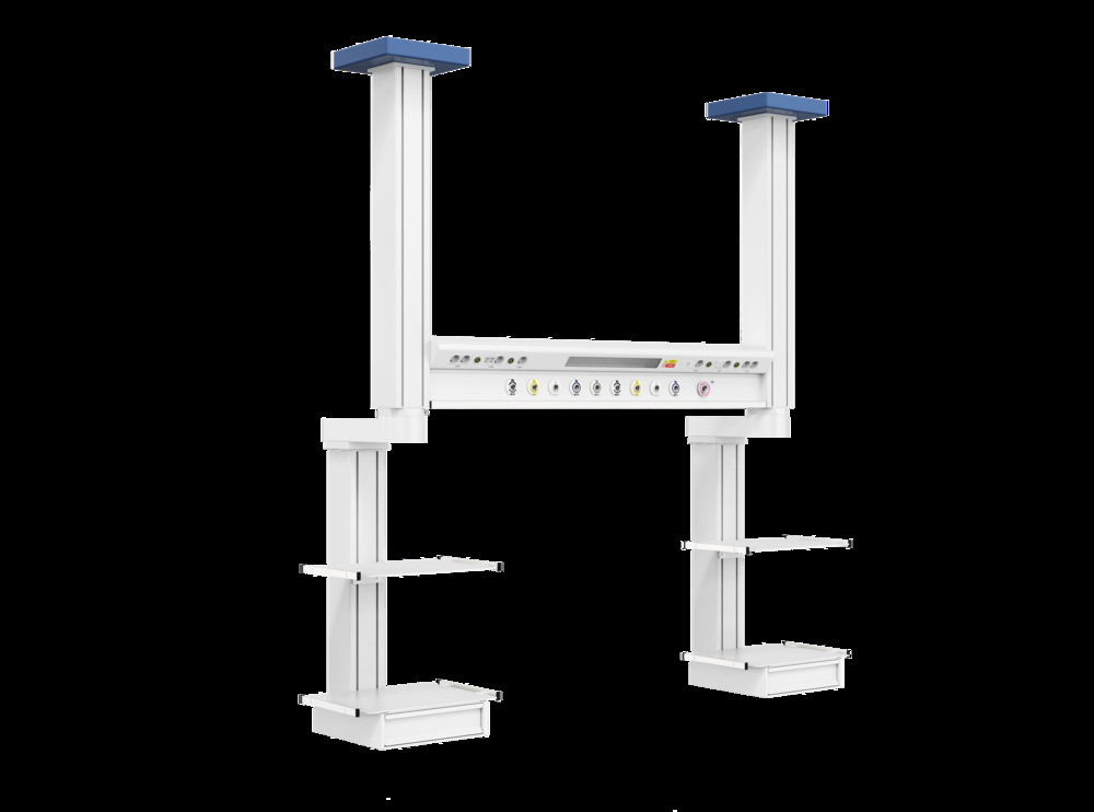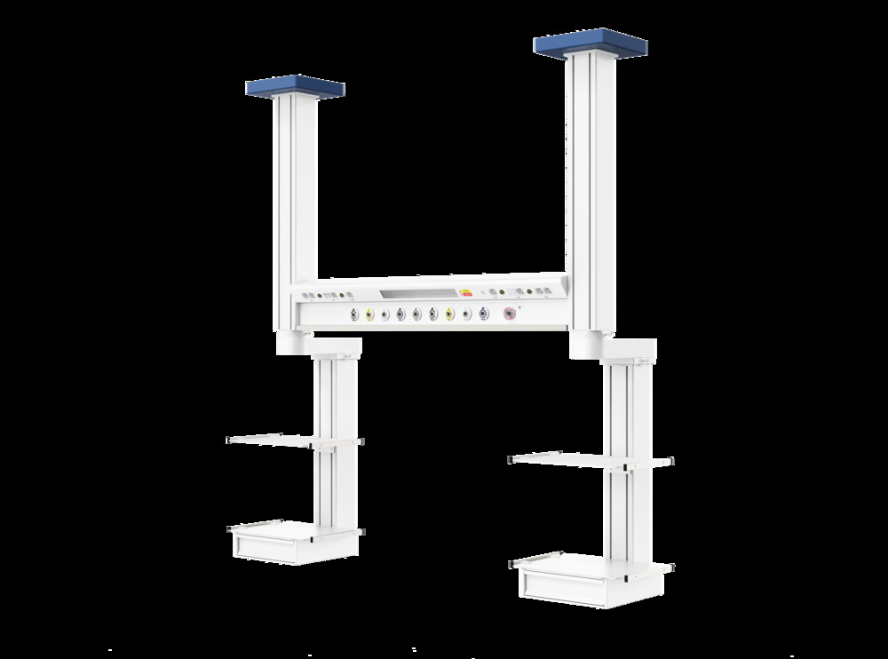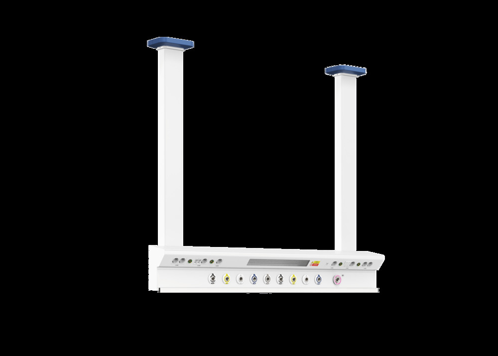 Мостовая потолочная медицинская консоль Кадуцей (Caduceus) CBN2 представляет собой горизонтальный Г-образный шкаф источников медицинских газов, электропитания и освещения, жестко закрепленный к потолку минимум на двух вертикальных опорах.
