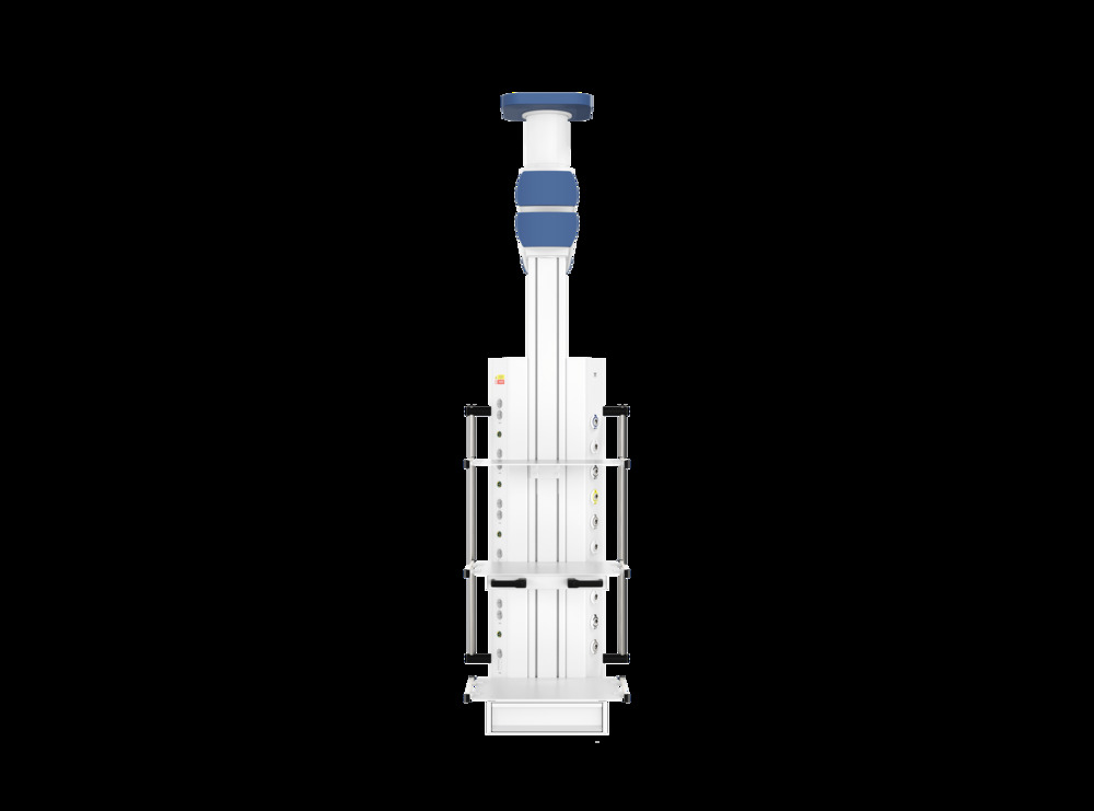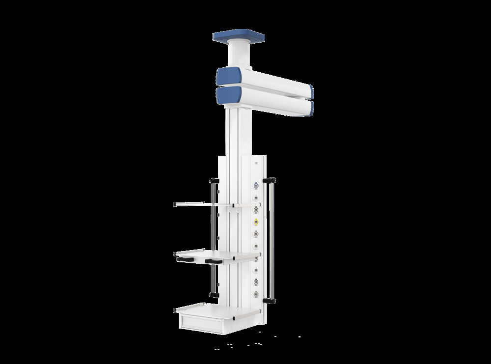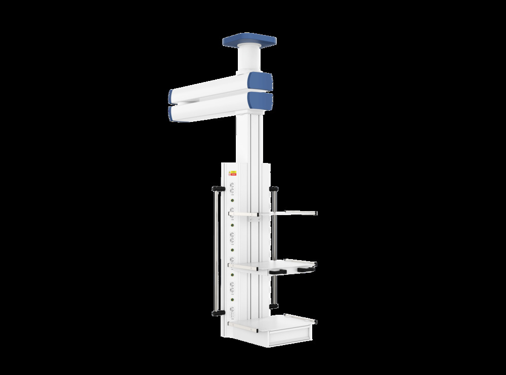 Потолочная двухплечевая медицинская консоль Кадуцей (Caduceus) C2-V - подвесная система CADUCEUS (Кадуцей) C2-V представляет собой двухплечевую консоль с вращающимся вертикальным шкафом источников медгазов и электропитания. Мобильность конструкции обеспечивается за счет наличия 2-х поворотных плеч длиной до 1200 мм каждое. Консоль незаменима для использования в операционных и реанимационных отделениях, родовых залах, а также палатах интенсивной терапии.