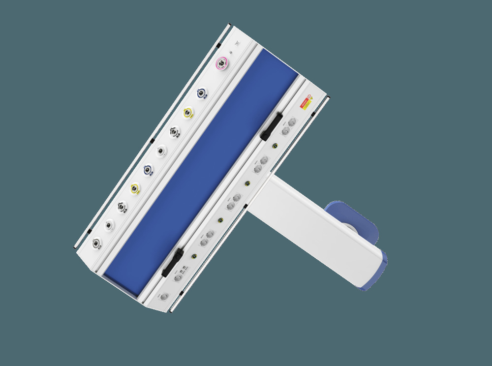 с вращающимся горизонтальным шкафом источников медицинского газоснабжения обеспечивает подачу медгазов и электропитания непосредственно к рабочему месту медицинского персонала. Поворотное плечо длиной до 1200 мм обеспечивает мобильность консоли, что позволяет облегчить доступ к пациенту и оптимизировать рабочее пространство.