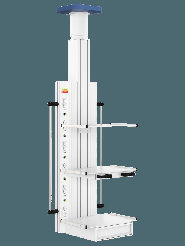 - уникальная многофункциональная система жизнеобеспечения, позволяющая осуществить подвод медицинских газов и электропитания непосредственно на рабочее место медицинского персонала, представлена в виде вращающегося вертикального шкафа, сочетающего в себе принципы эргономики, практичности, безопасности и технологичности.