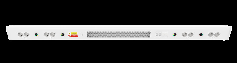 Грамотное использование принципов эргономики позволяет компактно разместить на консоли CADUCEUS CN0 электрические розетки в количестве до 8 штук, выключатели света, до 3х разъемов RJ-45 и гильзы защитного соединения*.