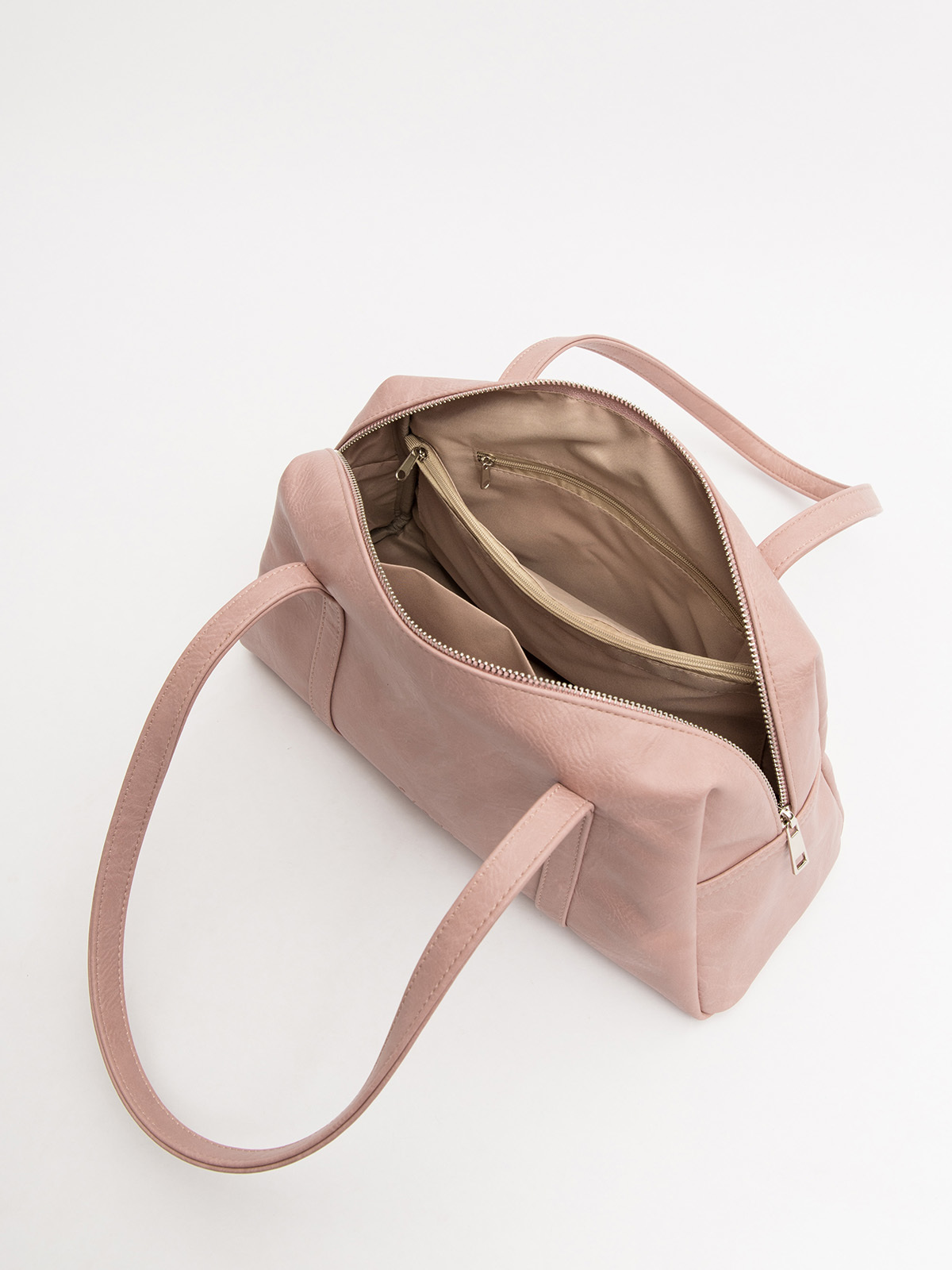 Эта женская сумка-саквояж габарита M с центральным входом на металлической молнии сочетает в себе винтажный шарм и современную практичность. Плоские настрочные ручки на передней и задней части дополнены тиснением на лицевой стороне и удобным карманом на молнии сзади. Внутри аккуратная окантовка, два стандартных кармана и дополнительный накладной карман на молнии для мелочей. Элегантный дизайн и продуманная функциональность делают эту сумку стильным аксессуаром на каждый день.