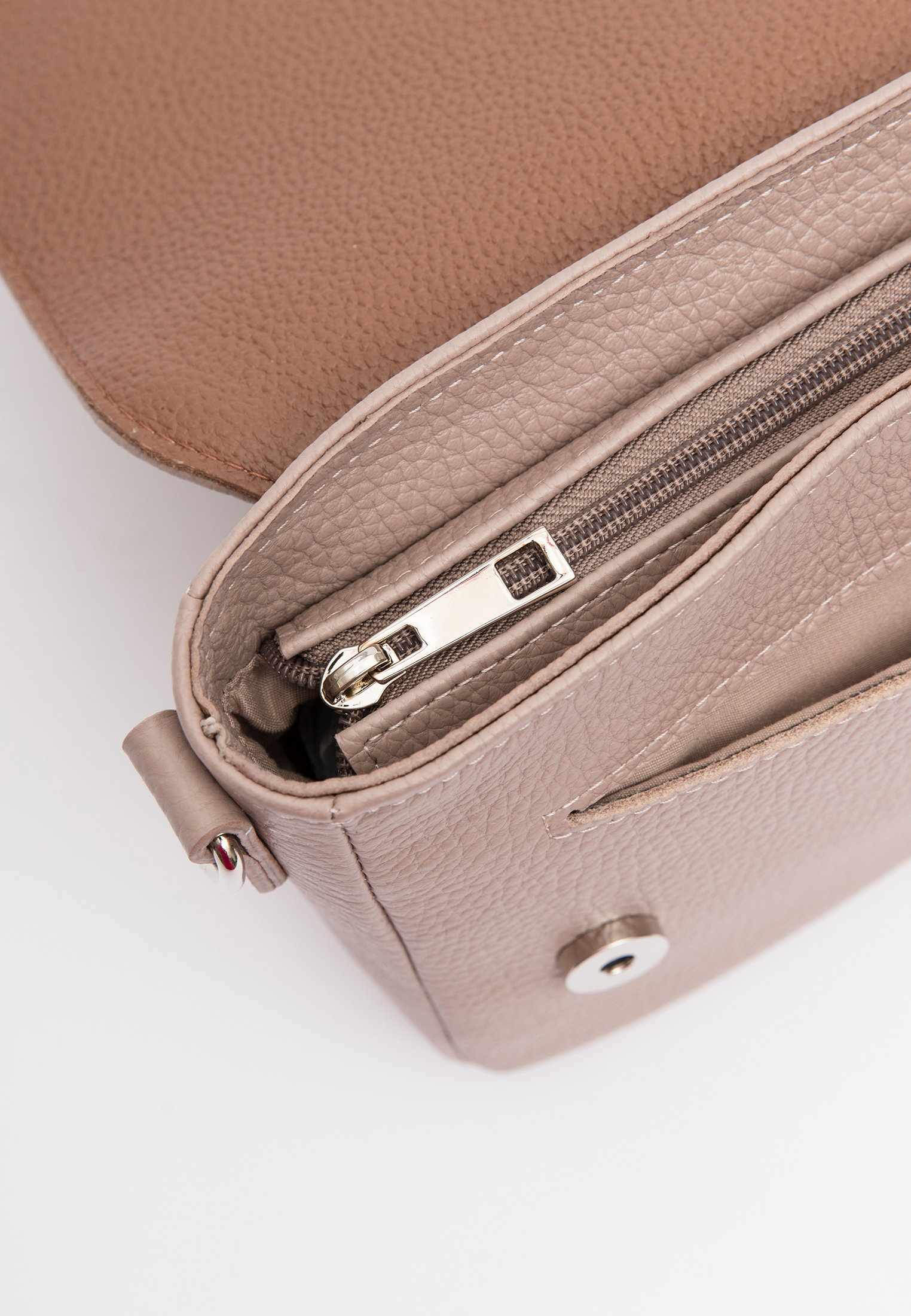 Миниатюрный кросс-боди в стиле S.Lavia из двух видов натуральной кожи с благородной отделкой оттенка camel. Компактная модель с короткой ручкой и регулируемым ремнём на кобурных кнопках предлагает два варианта ношения. Двойная защита основного отделения: клапан на магнитах и молния. Внутри — два стандартных кармана, снаружи — удобный задний карман на молнии. Переднюю часть украшает металлический декоративный элемент. Идеальный выбор для тех, кто ценит лаконичность, функциональность и узнаваемые детали бренда.