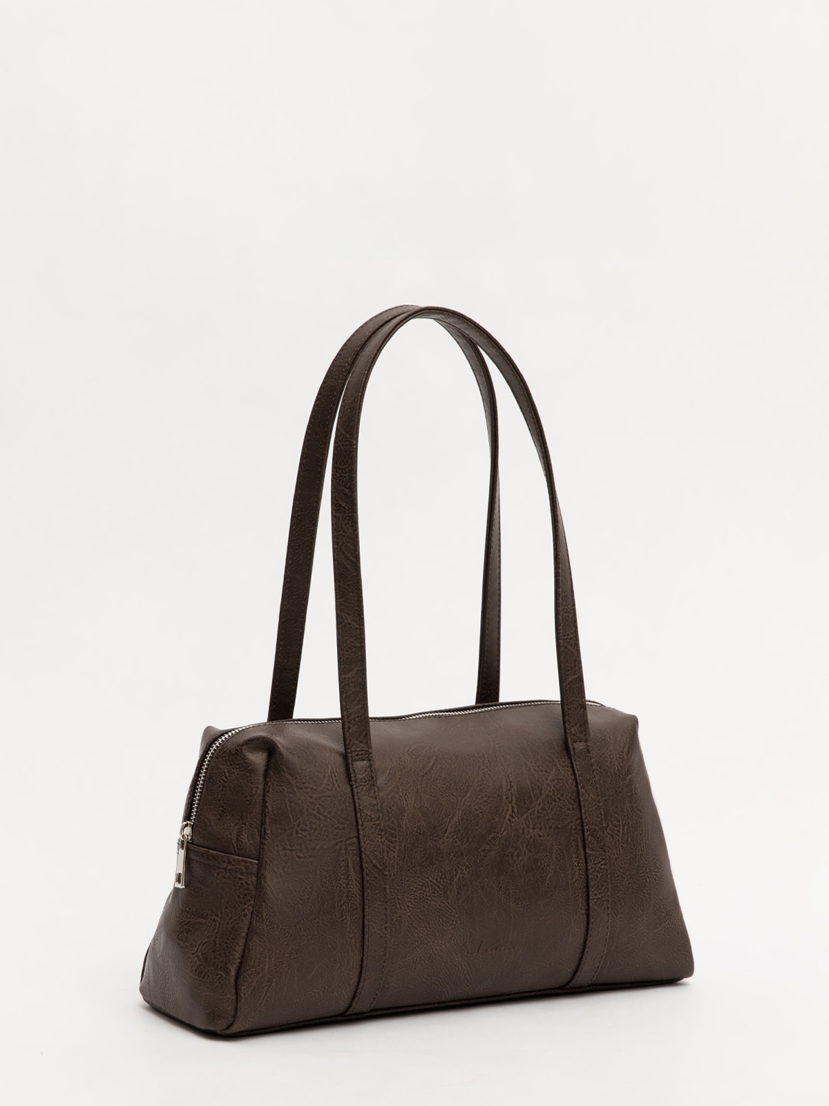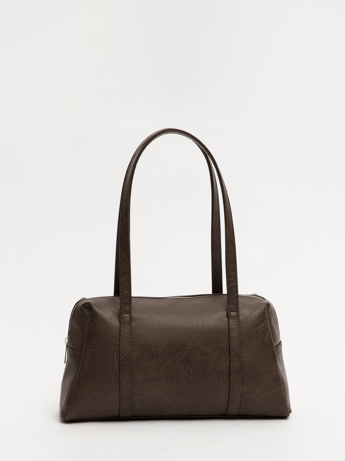 Эта женская сумка-саквояж габарита M с центральным входом на металлической молнии сочетает в себе винтажный шарм и современную практичность. Плоские настрочные ручки на передней и задней части дополнены тиснением на лицевой стороне и удобным карманом на молнии сзади. Внутри аккуратная окантовка, два стандартных кармана и дополнительный накладной карман на молнии для мелочей. Элегантный дизайн и продуманная функциональность делают эту сумку стильным аксессуаром на каждый день.