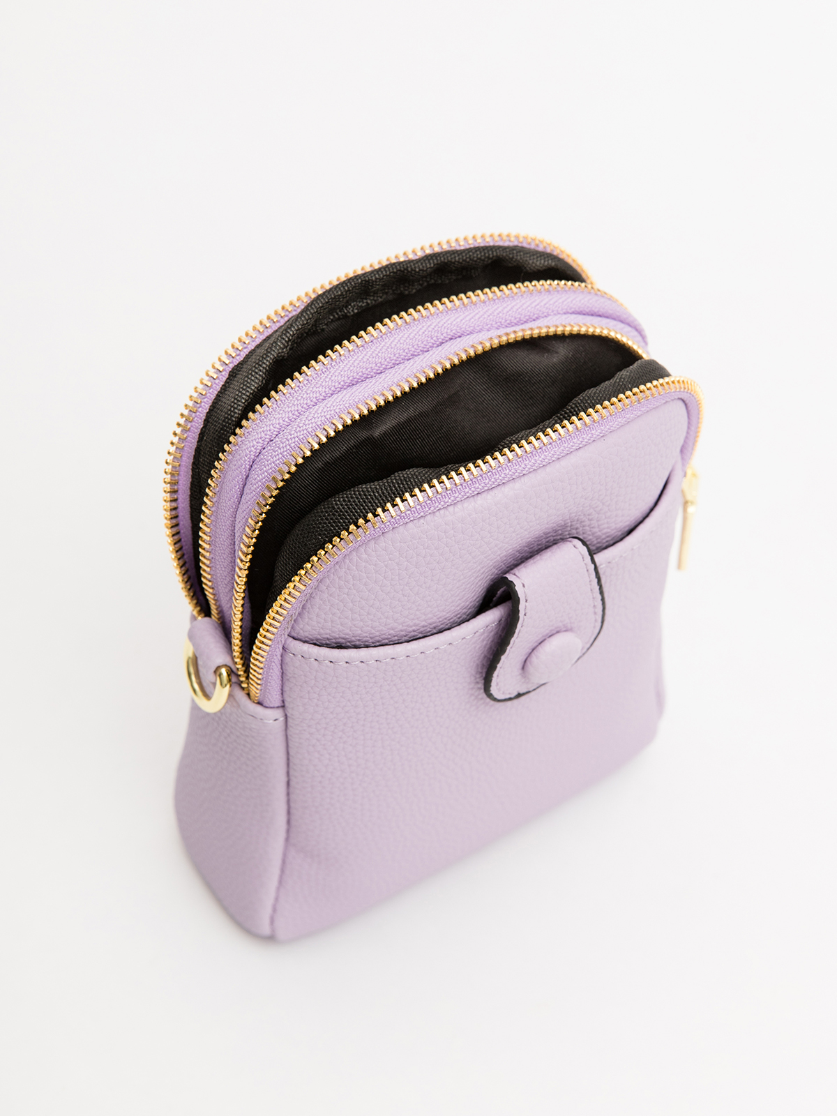 Небольшая сумка кросс-боди габарита S выполнен из винилискожи и имеет 2 отделения. Впереди карман на кнопке. Внутри отделения - открытый карман для телефона. В комплекте - длинный регулируемый плечевой ремень.