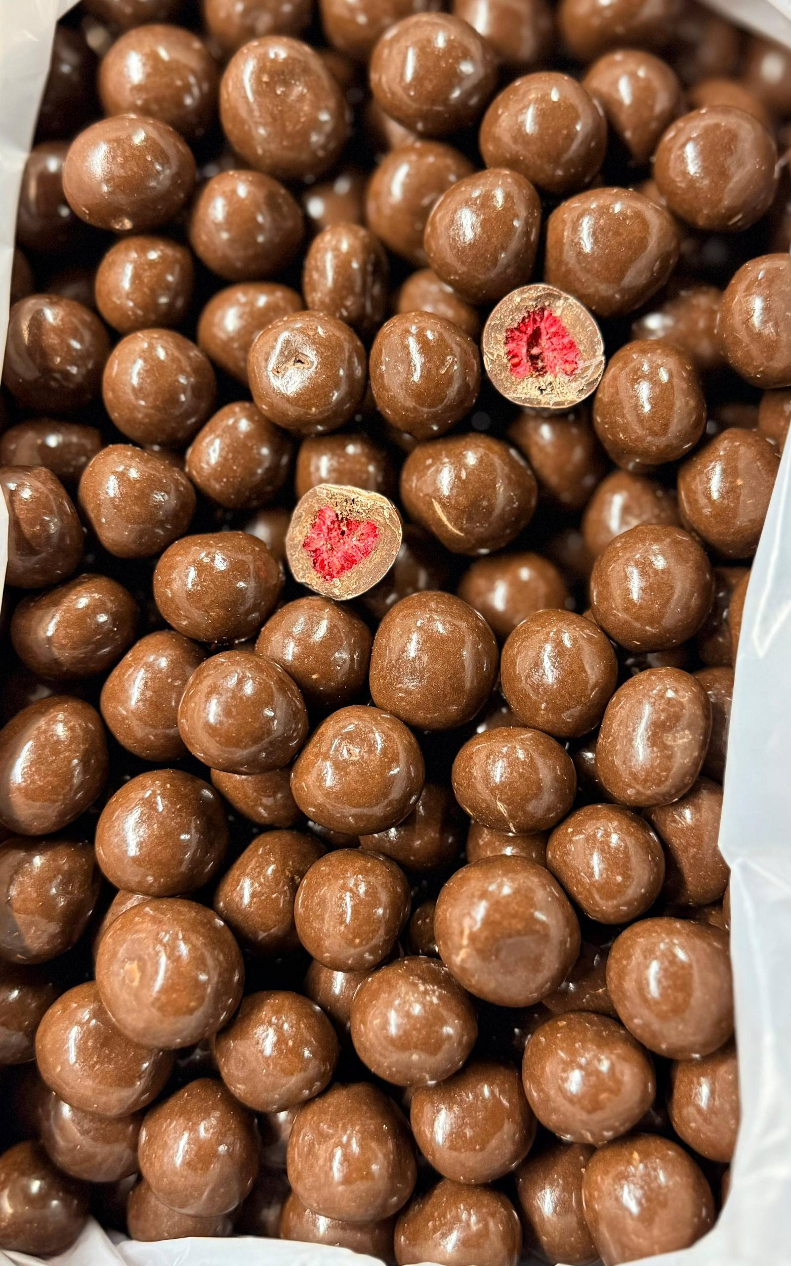 Каждое драже — это яркий ягодный акцент, который приятно раскрывается при каждом укусе: сначала нежный шоколад, затем насыщенный малиновый вкус с лёгкой хрустящей текстурой.