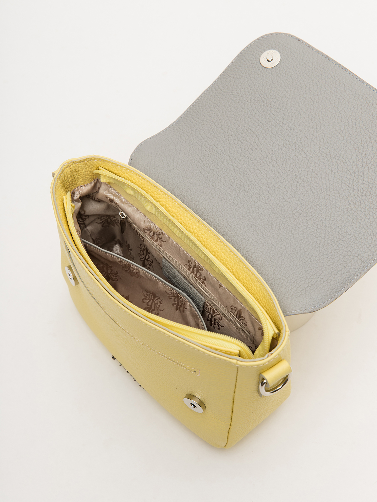 Миниатюрный кросс-боди в стиле S.Lavia из двух видов натуральной кожи с благородной отделкой оттенка camel. Компактная модель с короткой ручкой и регулируемым ремнём на кобурных кнопках предлагает два варианта ношения. Двойная защита основного отделения: клапан на магнитах и молния. Внутри — два стандартных кармана, снаружи — удобный задний карман на молнии. Переднюю часть украшает металлический декоративный элемент. Идеальный выбор для тех, кто ценит лаконичность, функциональность и узнаваемые детали бренда.